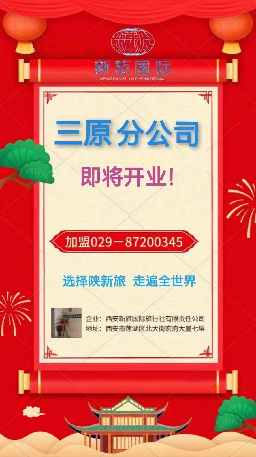 西安新旅國(guó)際旅行社有限責(zé)任公司三原分公司 即將開業(yè)