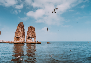 這里是威千公里幸福海岸線的起點,祝福人們在這里開啟幸福之門,踏上幸福岸線,沐浴在幸福的海洋里。后乘車赴榮成。榮成市位于山東半島最東端,這里風光旖旎、冬暖夏涼、春溫秋爽,海洋資源極其豐富,是一座美麗的濱海城市。約1小時車程。贈送游覽5A級風景區(qū)【成山頭】(門票已含):是中國大陸伸向海洋的最東端,古時被稱之為“天盡頭”, 2005年被《中國國家地理》評為“中國最美的八大海岸”大陸第一名。游覽【好運角景區(qū)】景區(qū)獨具特色,三面環(huán)海,一面接陸,海天一色,風景極其壯美,與韓國隔海相望,是中國最早看見海上日出的地方,自古就被譽為"太陽啟升的地方",后歷代帝王均有幸成山拜日神之舉,這里是名副其實的金烏之巢、太陽之家,遠觀海驢島,天鵝湖,宛如仙境,讓人流連忘返。而后參觀【福如東海文化區(qū)】景區(qū)自然地貌宛如一只浮在海上的巨大葫蘆,寓意“福祿雙全”。 景區(qū)內(nèi)風光獨特,建筑風格迥異,山水相映,群芳爭艷,島湖相連,魚躍鷗翔,人們在此既可以燃香祈福,又可蕩漿戲水,也可趕海拾趣,還可以品嘗海珍、抒發(fā)情懷,在碧海藍天之間暢游,在樂中領略“福”的真諦,置身其中,陶然于世外!隨后入住倪氏海泰度假酒店,酒店毗鄰海水浴場,依山環(huán)海,環(huán)境優(yōu)美。整個酒店建筑融于大海、沙灘、松林、湖泊之中。