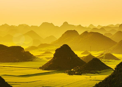早餐后乘車前往羅平(1.5小時(shí))!玖_平萬畝油菜花】每年春季二、三月間盛開在羅平壩子里喀斯特峰叢中的油菜花海,更是充分展現(xiàn)了自然天成的獨(dú)特魅力。每年春節(jié)前后,羅平壩子便成為了油菜花的海洋。80萬畝連片的油菜花漾著春日的清香,奏著豐收的歡歌,使得整個(gè)的羅平縣城都包裹在了花海之中。金雞峰是觀花海的最佳處之一,站在金雞山上,只見漫山遍野的油菜花鋪天蓋地,秀峰、村舍、道路、溪流……世間一切盡數(shù)融入花之海洋,黃花綠葉交相輝映,色彩鮮亮明快,更有金梭般的陽光在花海上梳過,泛起黃金的光澤,令人心跳不已。凡駐足這個(gè)最大的天然花園內(nèi),無不感嘆羅平是“金玉滿堂”之鄉(xiāng)。